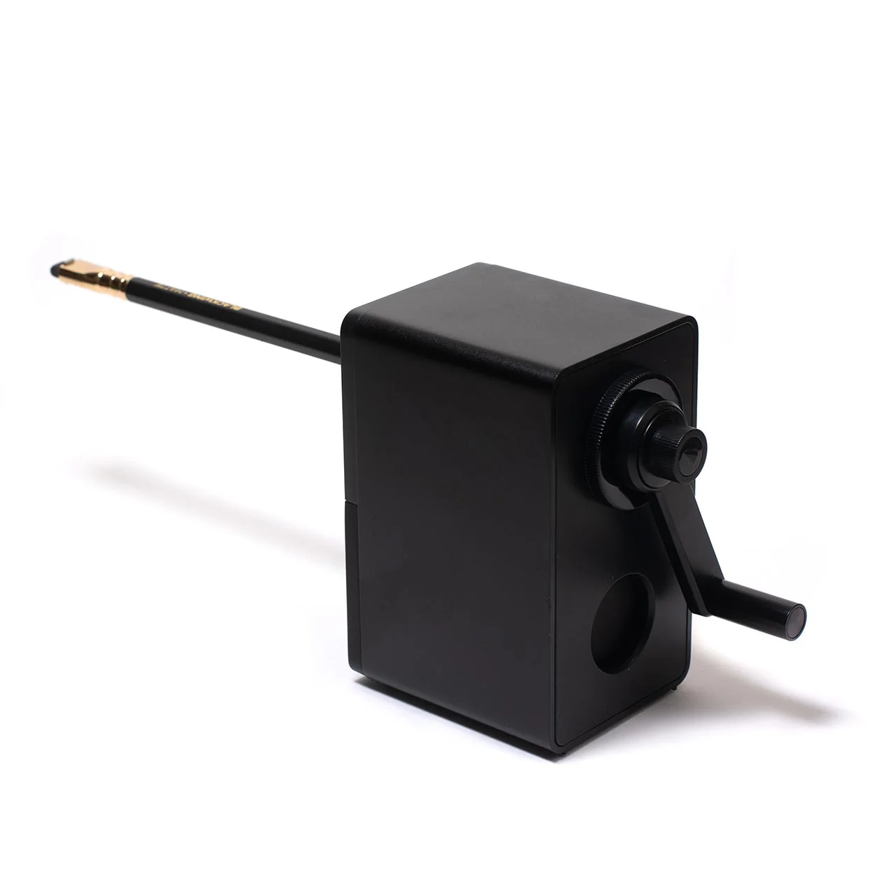 The Blackwing Desktop Pencil Sharpener uses a helix blade to sharpen your pencils to perfection. The dial on the crank allows you to adjust the point from long and curved to short and blunt. Its unique sharpening system retracts the pencil automatically without scuffing the finish, and it includes an automatic brake to prevent over-sharpening and wasting the lead. The sharpener is cased in a durable matte black metal and polymer shell that looks sleek and feels substantial. It also has a drawer to empty the shavings that locks into place with a satisfying click.