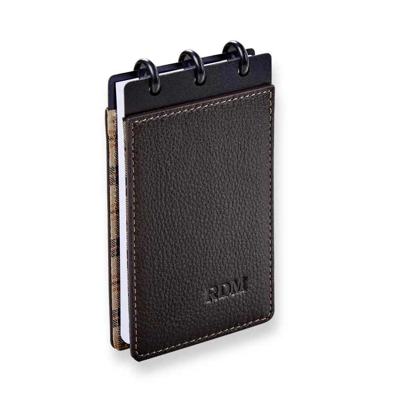 Take the award-winning Circa® note-taking system with you everywhere. This conveniently-sized 3 x 5 jotter is easy to slip into your purse, brief or shirt pocket. Includes 30 removable and rearrangeable 3 x 5 cards, ruled on both sides, with three 1/2" black discs and a sturdy full-grain pebbled leather cover. Add a monogram for a personal touch.