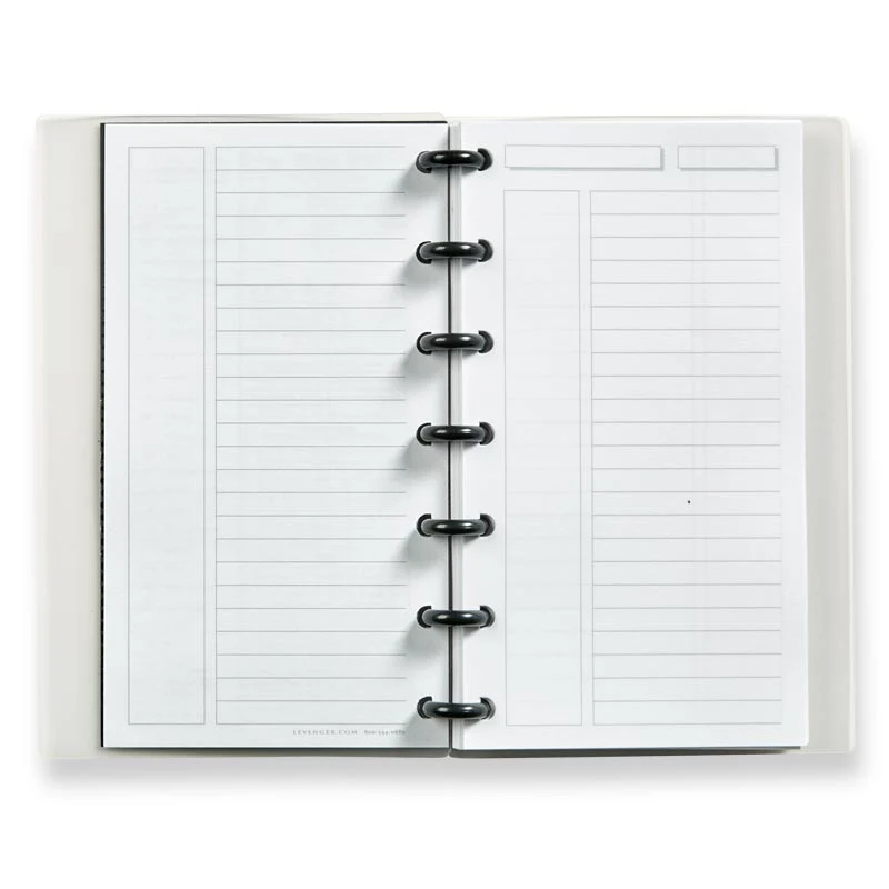 Build a better notebook with Circa® available exclusively from Levenger. With pages that are easy to add, remove and rearrange, Circa helps you organize your notebook your way. The annotation 1/4" ruled notebook has 60 sheets of our substantial, pen-friendly 90-gsm paper, 1/2" discs and durable translucent covers. Now go forth and create a note-taking system that works for you.