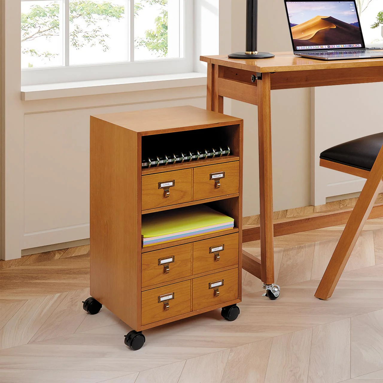 This Product Ships Free. Customize this clever little storage table to meet your storage needs. Attach either the stationary legs or the rolling casters (both are included), and add additional drawers (one is included) or use the shelves for storage. Shelves can be placed to create any of nine possible configurations; make shelves as tall or short as you need them to be, turn a shelf into a drawer or vice versa. Add a vintage library feel with ourĀ CubiĀ Card Catalog Drawers (available separately).