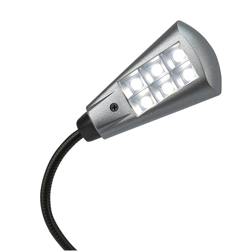 Flexible neck, sleek profile, bright light. A compact booklight that can flex and shine a bright light wherever you need it. Small, but powerful, this light has a fully adjustable lamp head and features six LED bulbs. Clips on to any book or magazine. The light has a stable clip, which can also be used as a base for a small desk lamp.