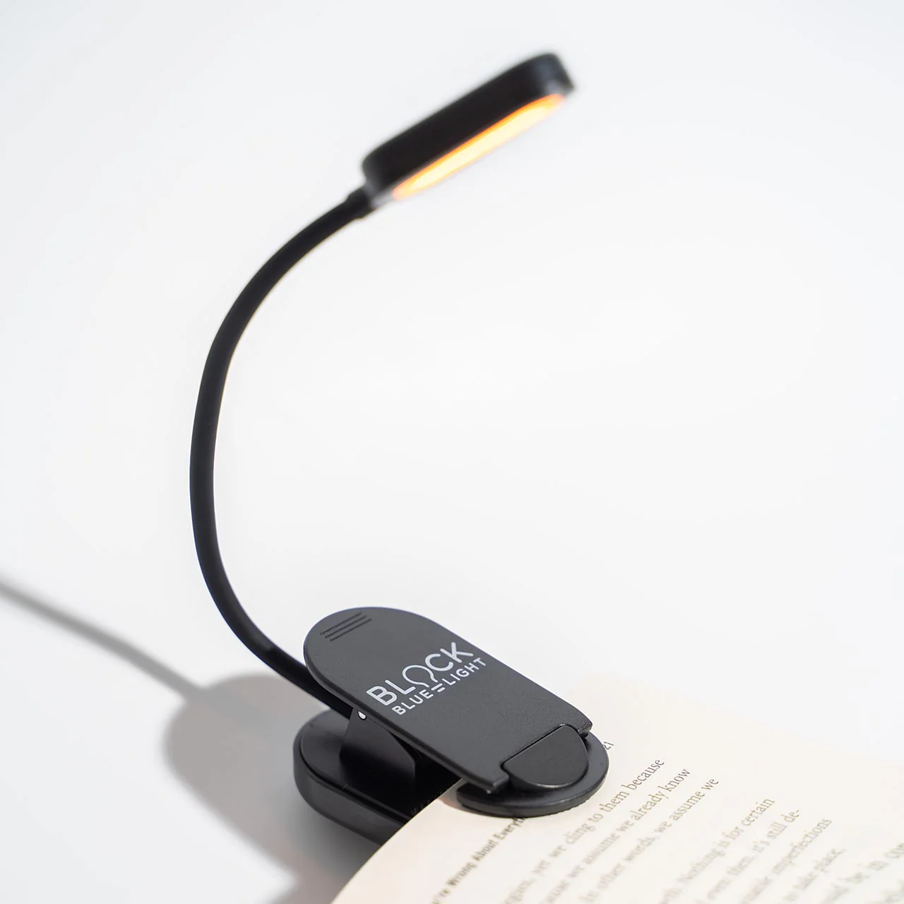 In today’s world, we are bombarded with blue light from our electronic devices and other artificial light sources. Chronic exposure to blue light suppresses melatonin production and disturbs the sleep cycle. The No Blue BookLight provides a solution with a warm and relaxing, flicker-free candlelight feel, 100% free of any blue light. It has 360-degree flexibility and can be adjusted to the exact position you want, especially useful when reading in bed with a partner. It's lightweight, rechargeable and completely portable, perfect for traveling, camping, using in the baby's nursery, or utilizing anywhere you need some light that is 100% free of sleep-disturbing blue light. The rubber pad on the clip protects book pages from being damaged and offers secure and stable clamping. The large clip has a flat bottom base to convert it into a table lamp, too.