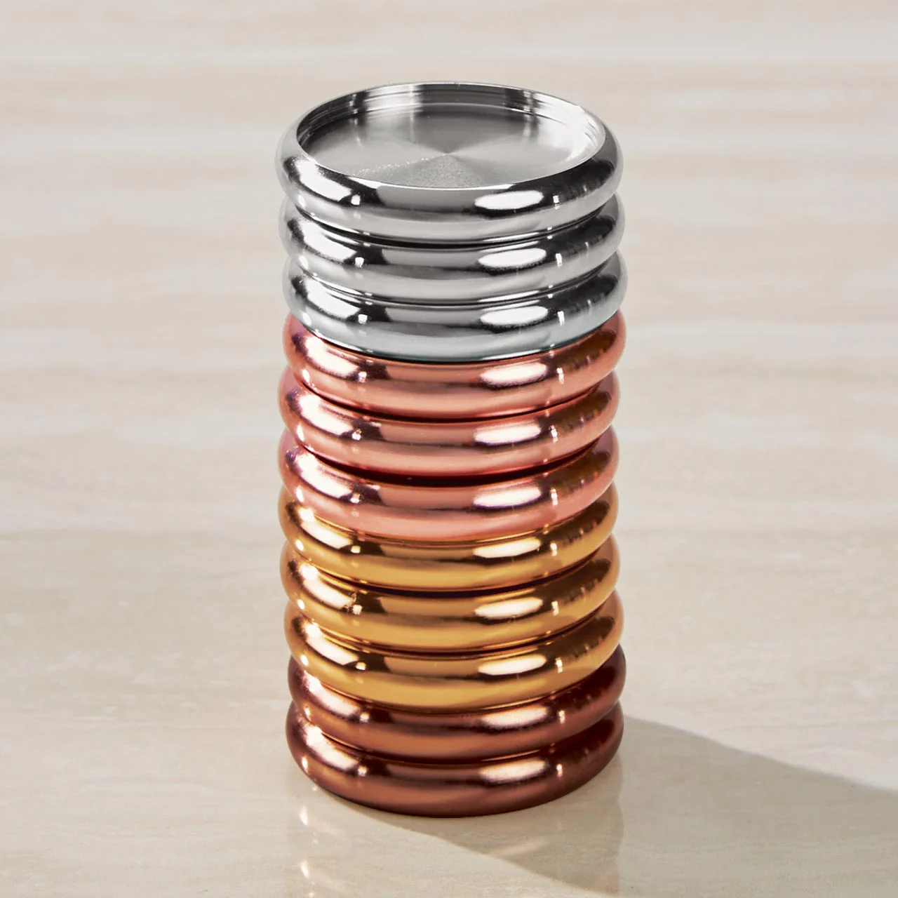 Enhance your Circa® notebook with this gleaming metallic disc assortment. Crafted from sleek, polished aluminum, these 1" metal discs for discbound notebooks allow you to turn pages with lightning speed. Set of 11 is enough to make one letter-size or midway-size notebook, or a junior notebook plus a Jotlet. Set of 11 includes 3 each of Gold, Rose Gold and Silver and 2 of Copper.