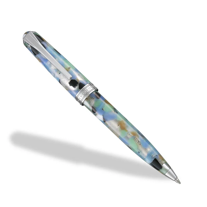 An award-winning True Writer® pen design, touched by the sea. Inspired by those shimmering bits of glass polished by the tides, the resin barrel of the True Writer Sea Glass pen features glimmering flecks of light blue, green, amber and khaki, highlighted by shining chrome appointments. Personalize with a monogram or full name. Ballpoint or Rollerball—and also available as a Fountain Pen.