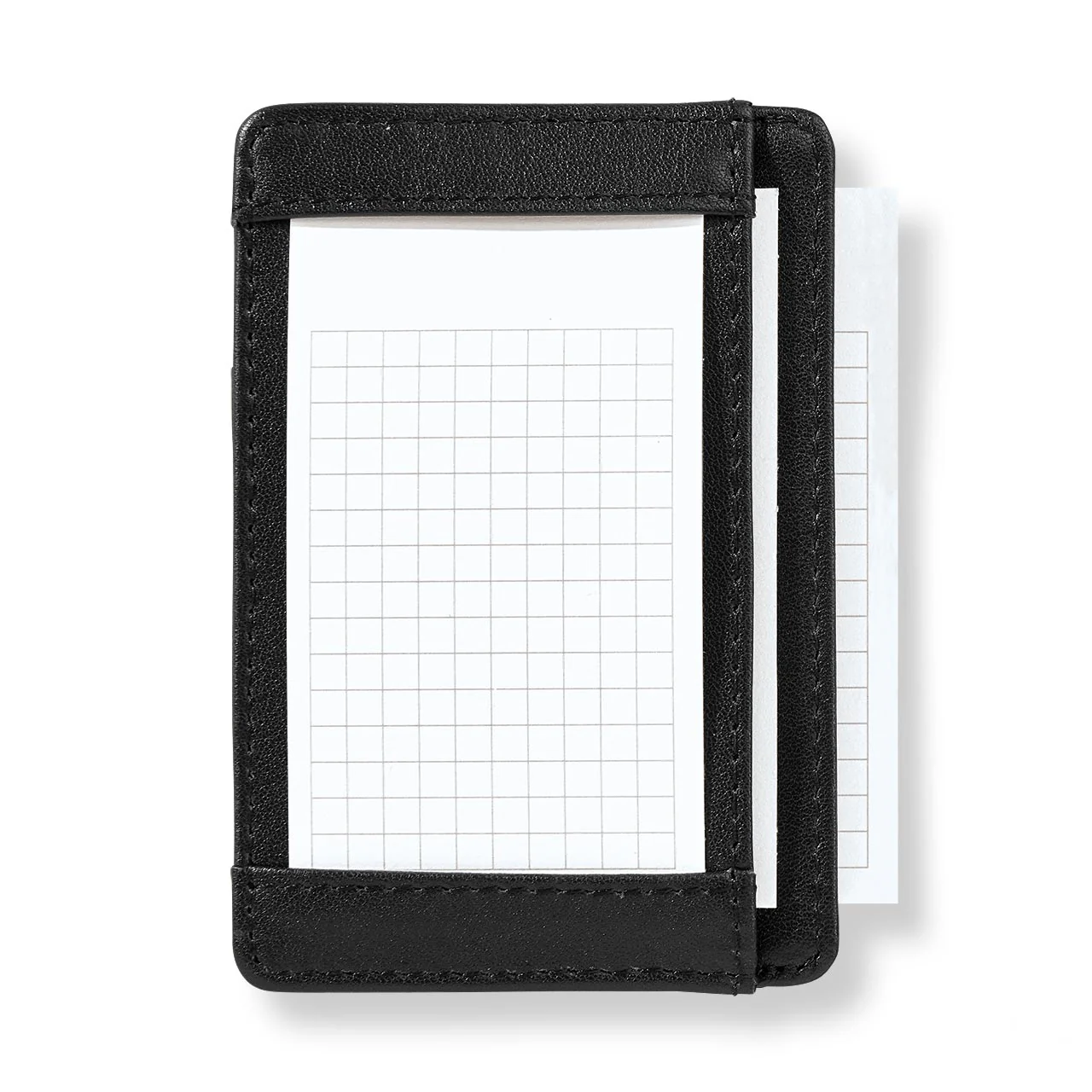 A note-taking favorite returns in a sleek new silhouette. “Hey, do you have something to take a note with?” Now you always can say “Yes!” Our smooth, full-grain leather Wallet Writer is a wallet for your notes...and of course, business cards fit too. (It’s like a miniature alternative to our 3 x 5 size Pocket Briefcase.) It has spots for cash, cards and a place to write, plus our Walletini mini ballpoint pen in its own sleeve. We also include a wallet-size card sampler for capturing those big ideas. Â